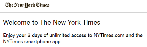 - You have successfully claimed a 72-hour pass when you see the confirmation message below. A message will also be sent to the email address linked to your NYTimes.com account confirming access.